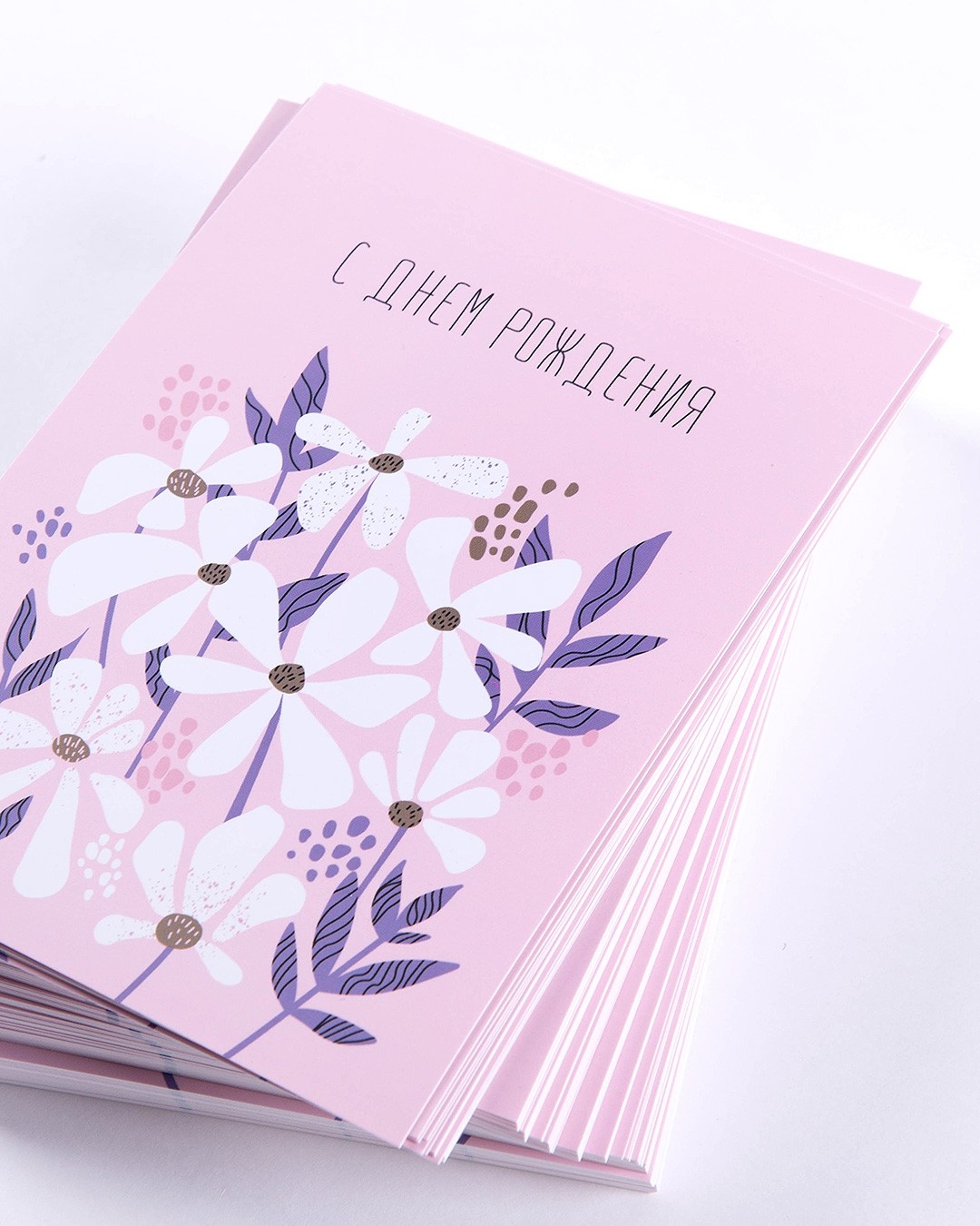 Открытка "С днем рождения. Розовые цветы"