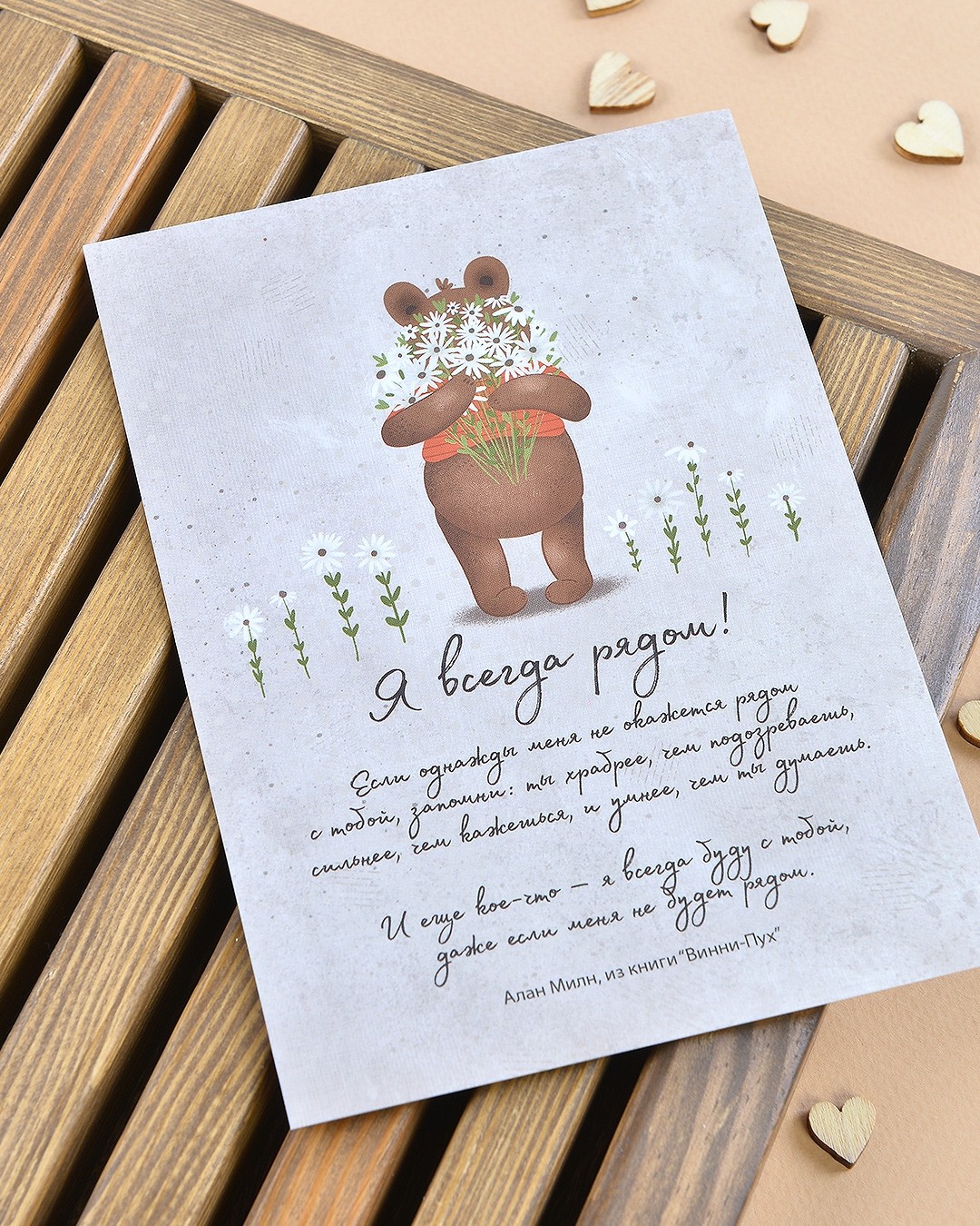 Размер открытки: 10*15 смМатериал: мелованная бумагаПлотность: 300 г/м2Двусторонняя матовая ламинацияШтрих-код на оборотеКрафт-конверт