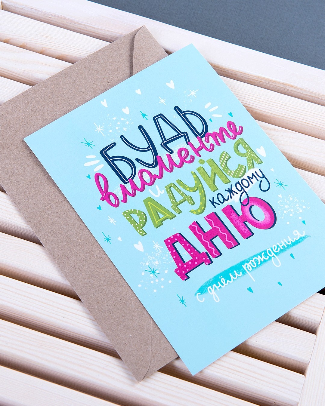 Открытка с крафтовым конвертом "С днем рождения. Будь в моменте"