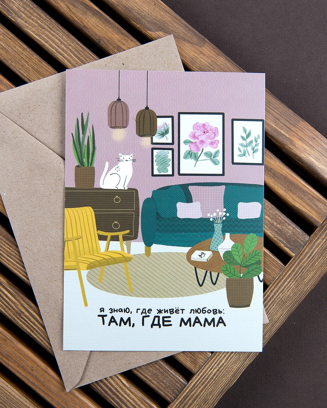 Открытка с крафтовым конверьтом "Я знаю, где живет любовь: там, где мама"