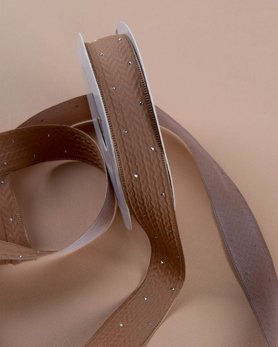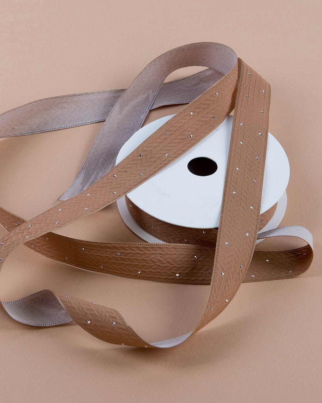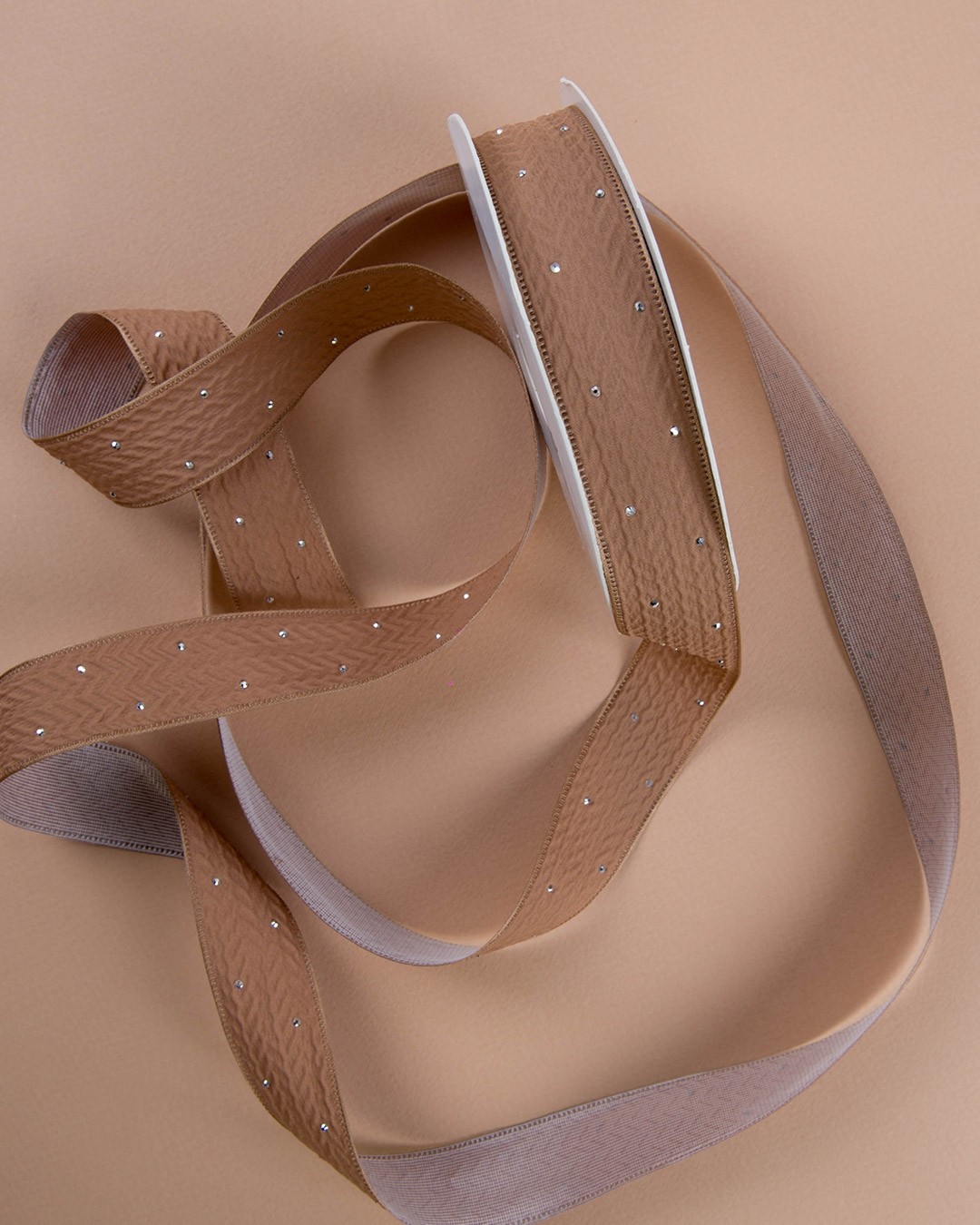Лента бежевая с блестками / 9 метров