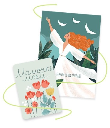 Это сердце нашей коллекции. Каждая открытка — как короткое письмо: с настроением, посылом и визуальной точкой соприкосновения. Мы делаем открытки под любой повод или без