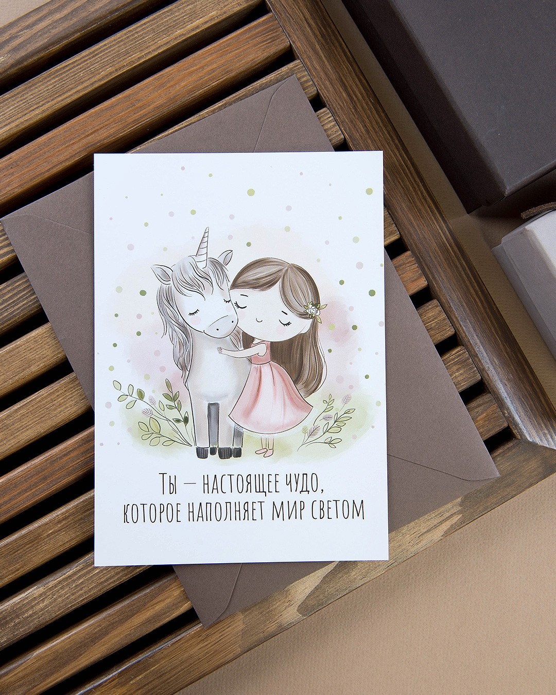 Открытка "Девочка и единорог"
