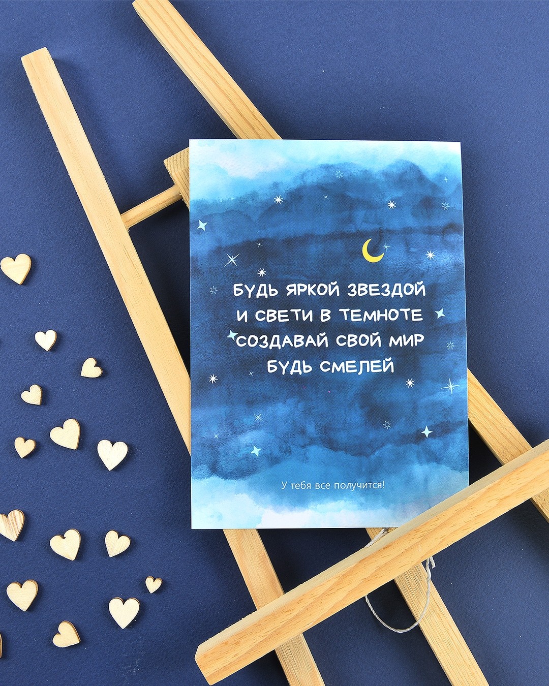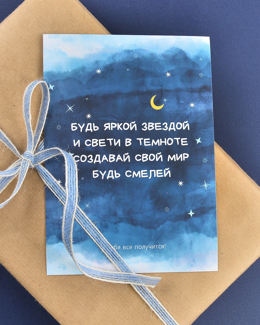 Размер открытки: 10*15 смМатериал: мелованная бумагаПлотность: 300 г/м2Двусторонняя матовая ламинацияШтрих-код на оборотеКрафт-конверт