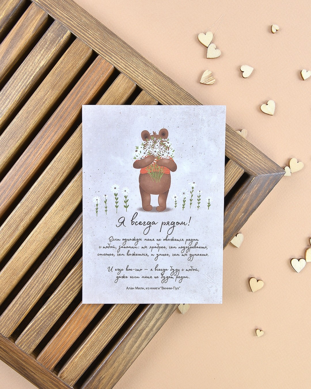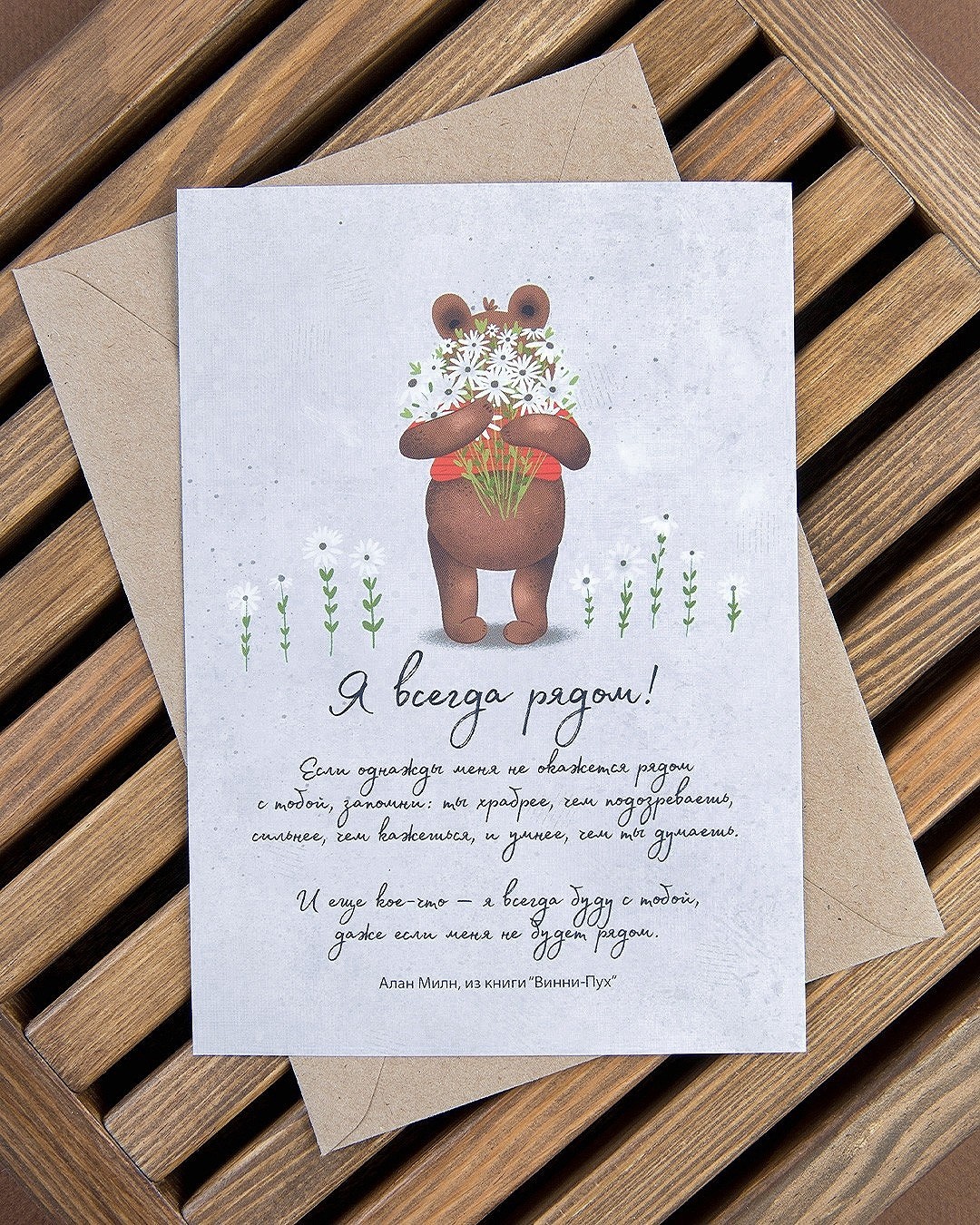 Размер открытки: 10*15 смМатериал: мелованная бумагаПлотность: 300 г/м2Двусторонняя матовая ламинацияШтрих-код на оборотеКрафт-конверт