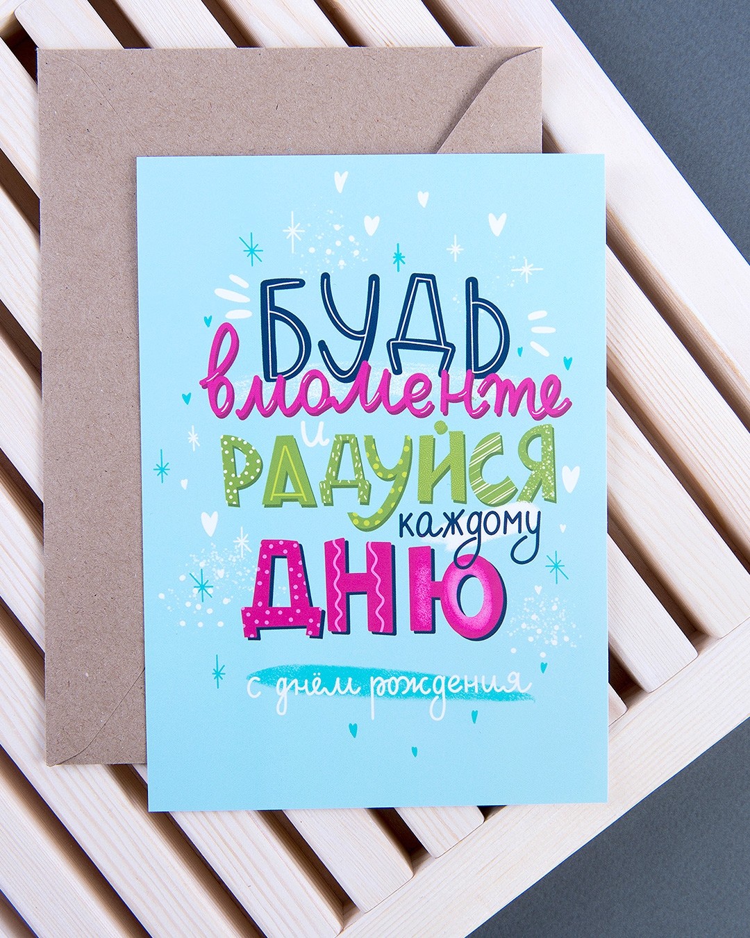 Открытка с крафтовым конвертом "С днем рождения. Будь в моменте"