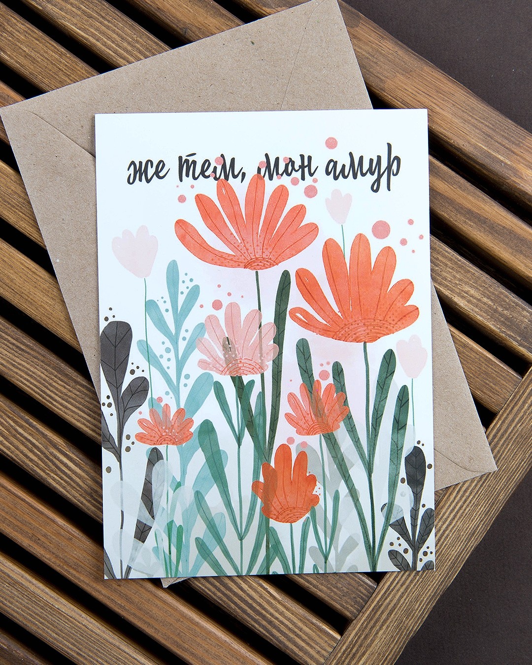 Открытка с крафтовым конвертом "Же тем, мон амур"