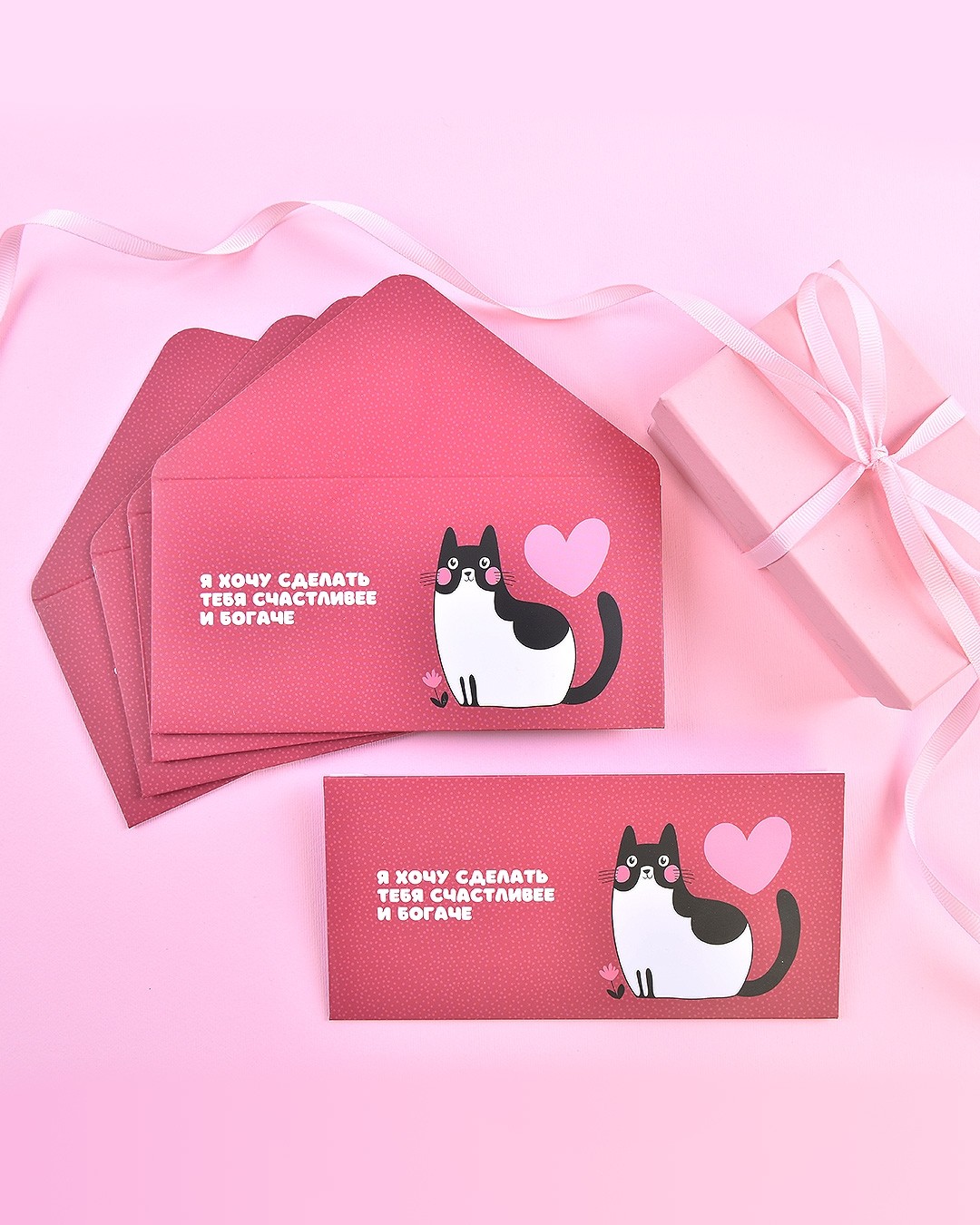 Конверт для денег "Я хочу сделать тебя счастливее и богаче" / 5 шт.