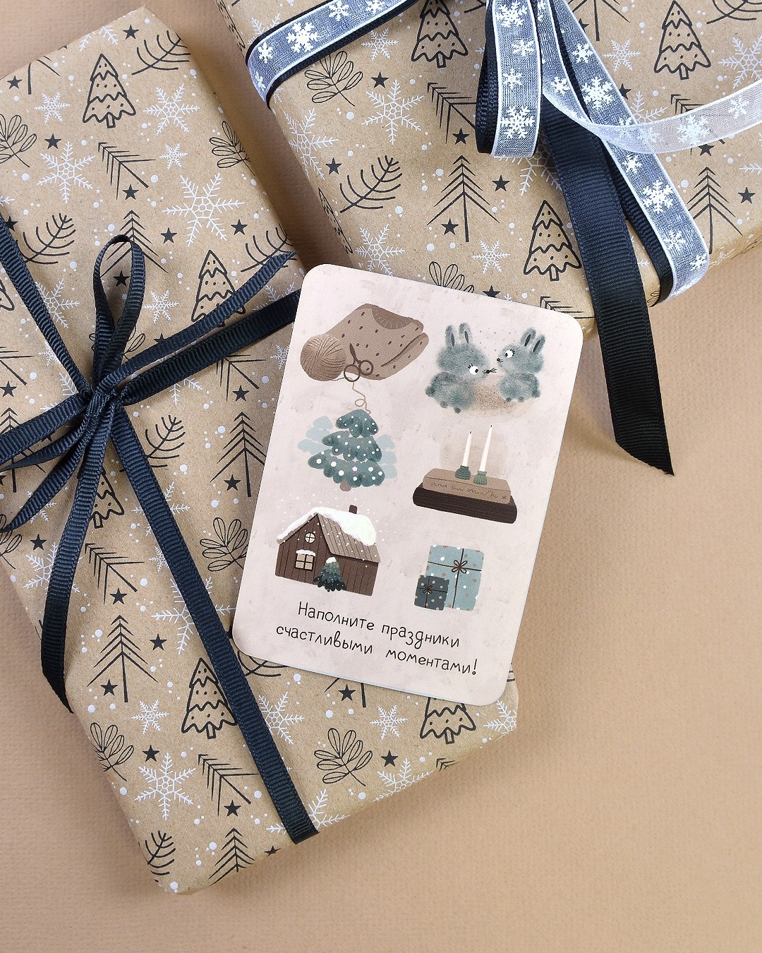 Мини-открытка "Наполните праздники счастливыми моментами!" / 5 шт.