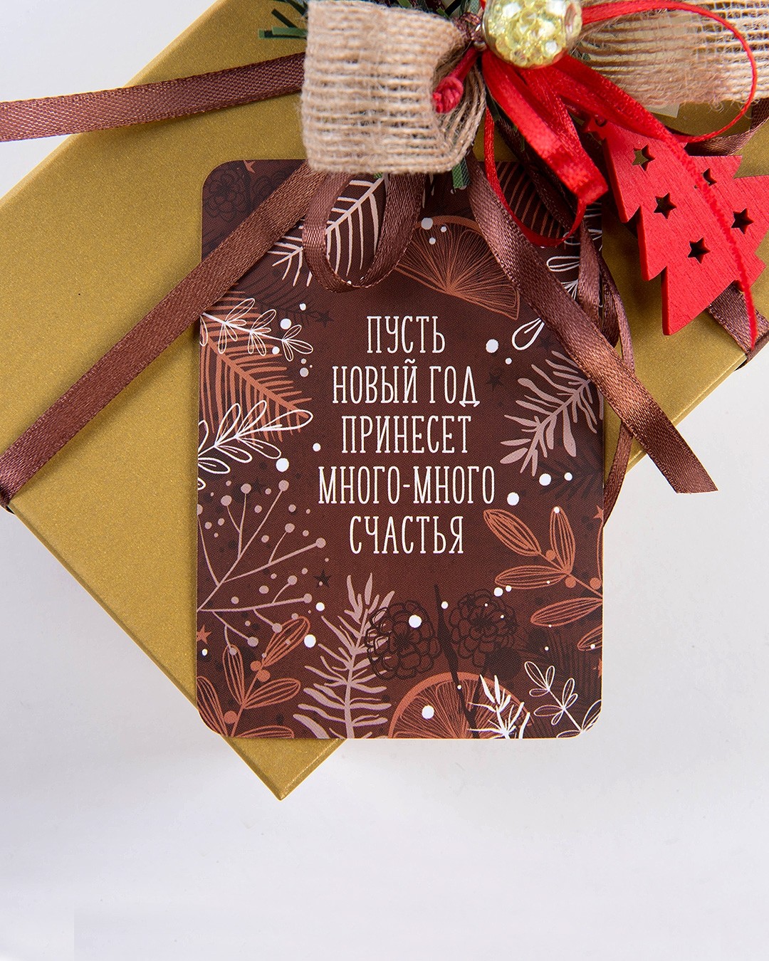 Мини-открытка "Пусть новый год принесет много-много счастья" / 5 шт.