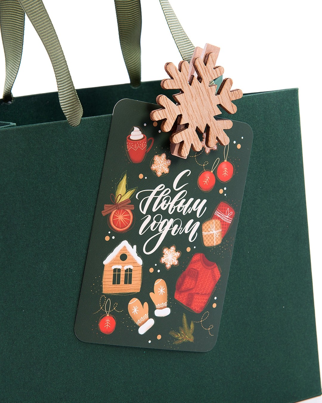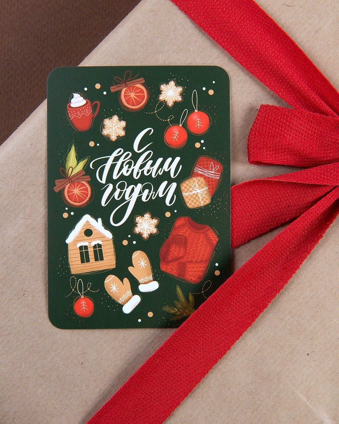 Мини-открытка "С новым годом. Зеленая" / 5 шт.
