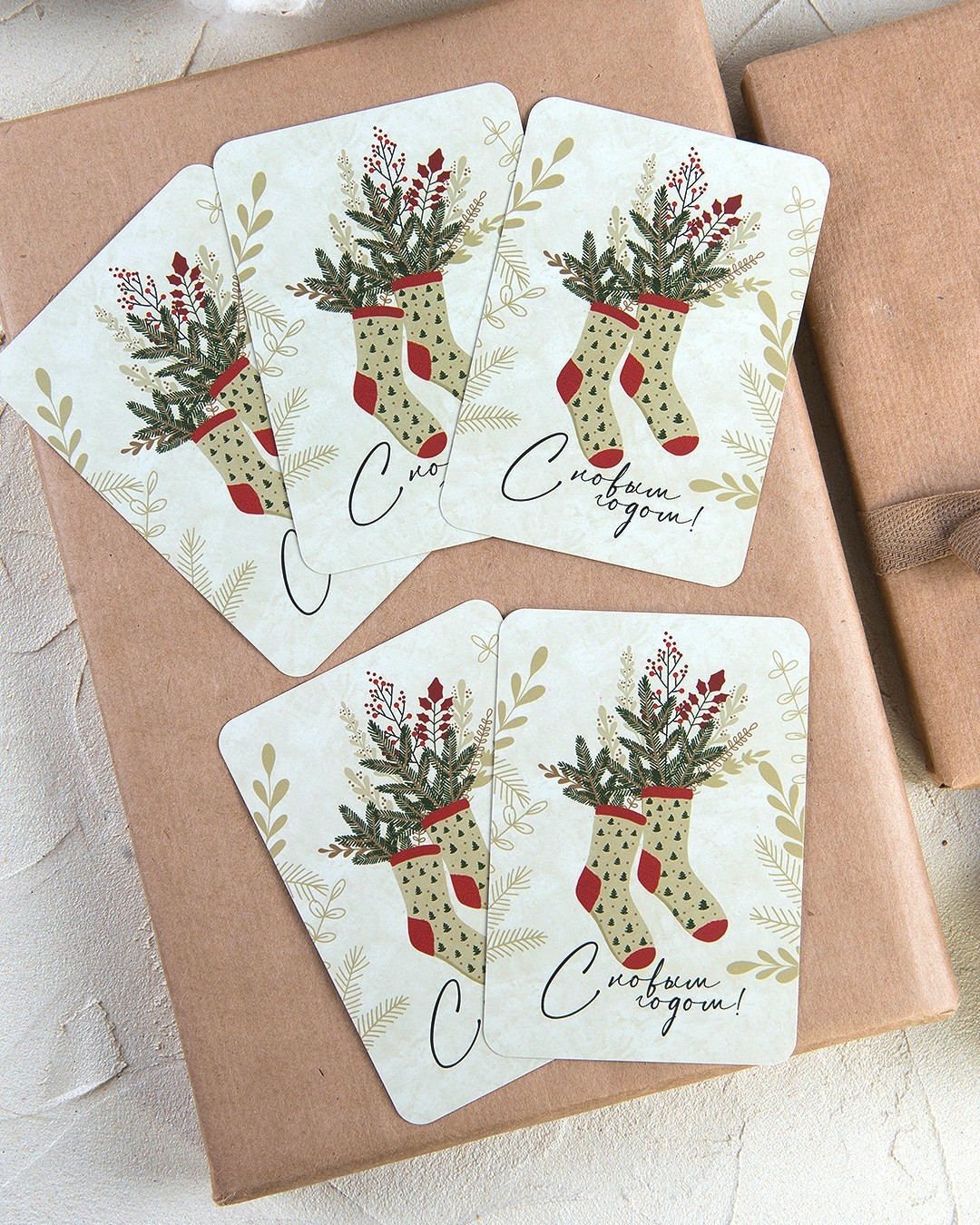 Мини-открытка "С новым годом" / 5 шт.