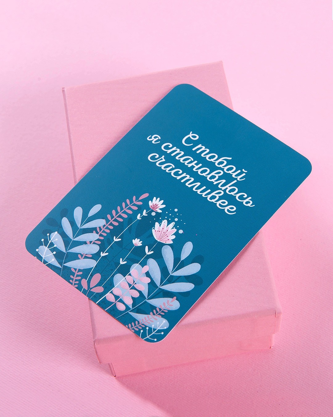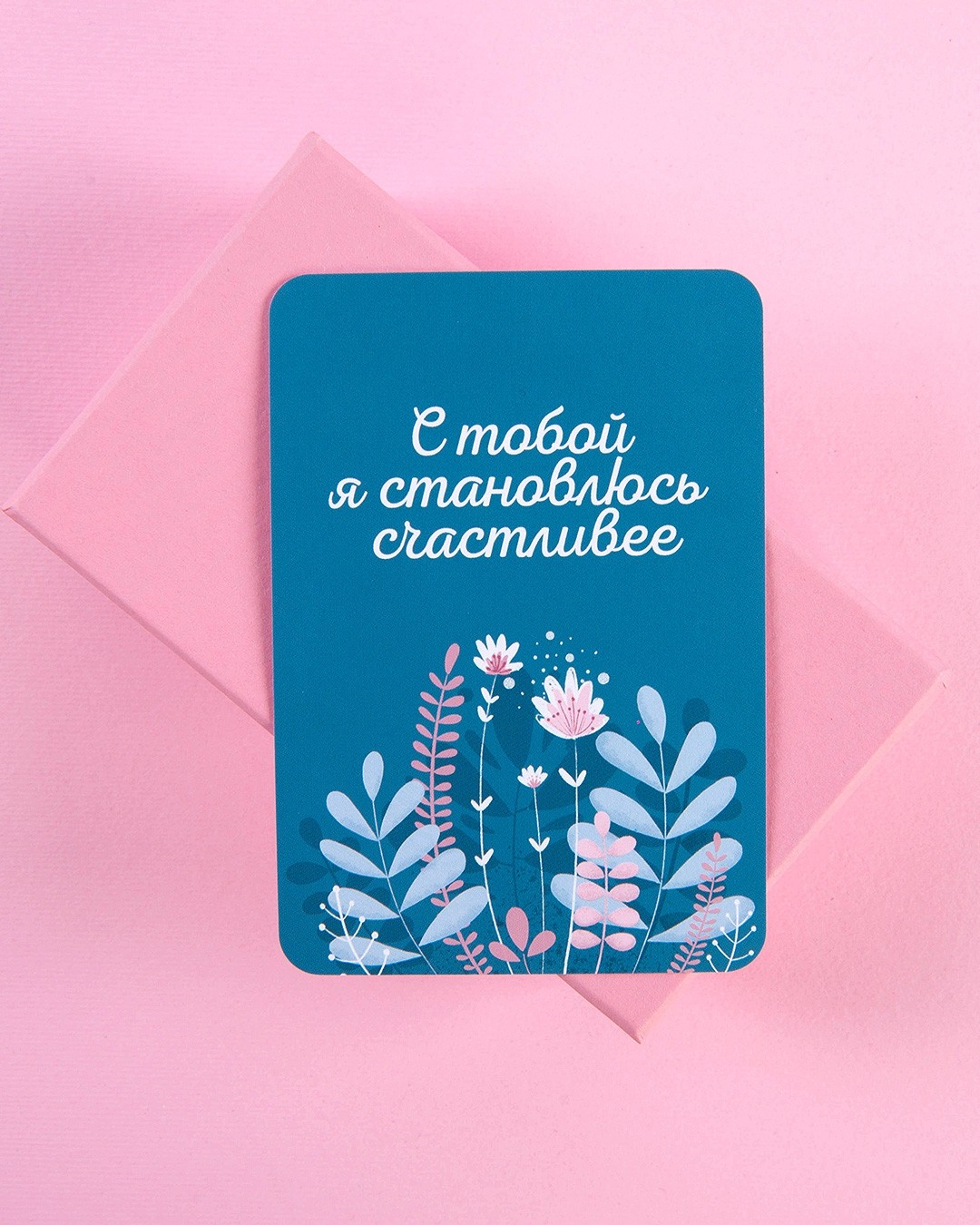 Мини-открытка "С тобой я становлюсь счастливее" / 5 шт.